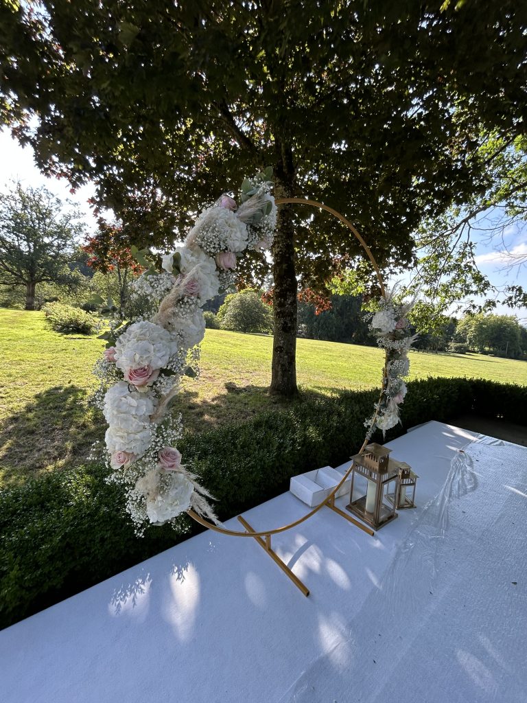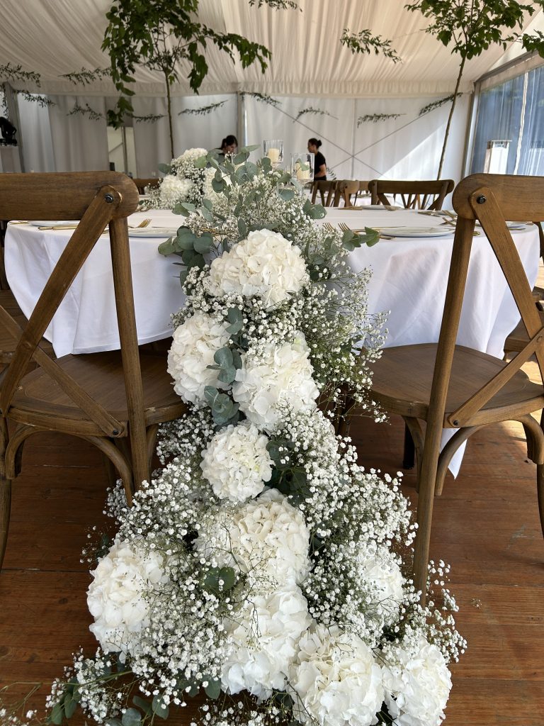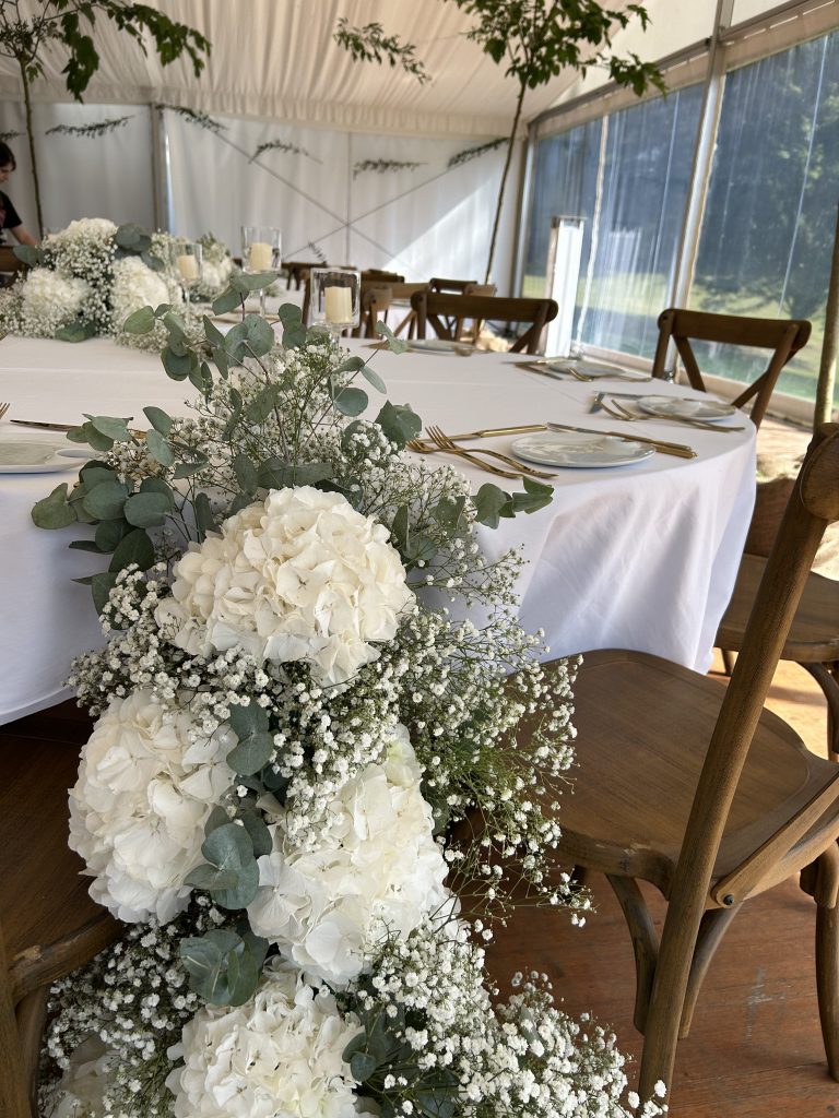 Une douce cascade florale aux teintes blanches se déploie avec grâce. Les hortensias, généreux et lumineux, s’unissent à la légèreté du gypsophile pour créé un décor aérien et raffiné pour votre mariage .